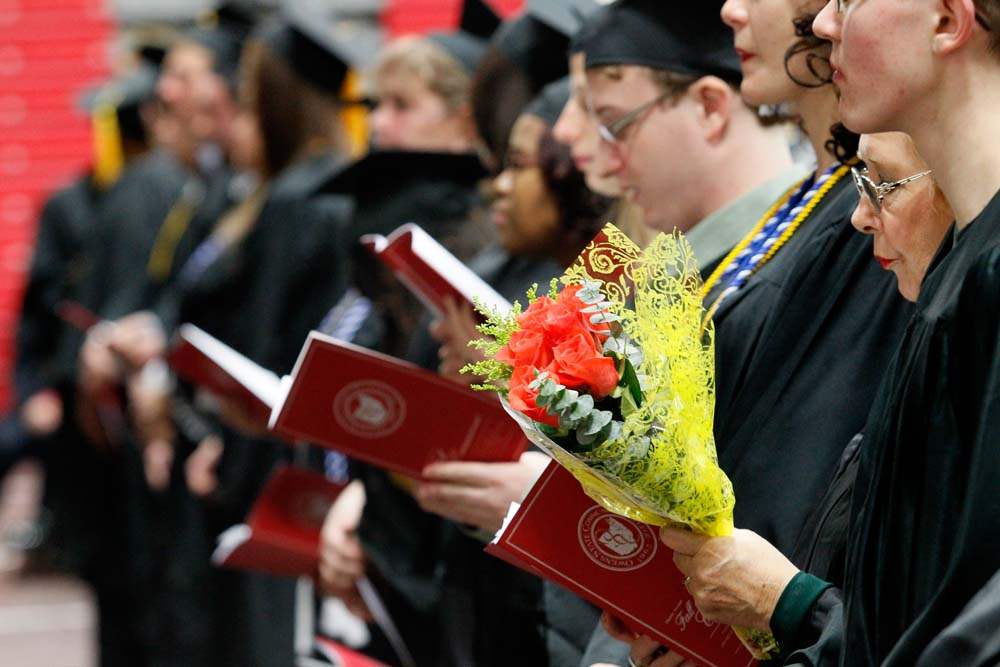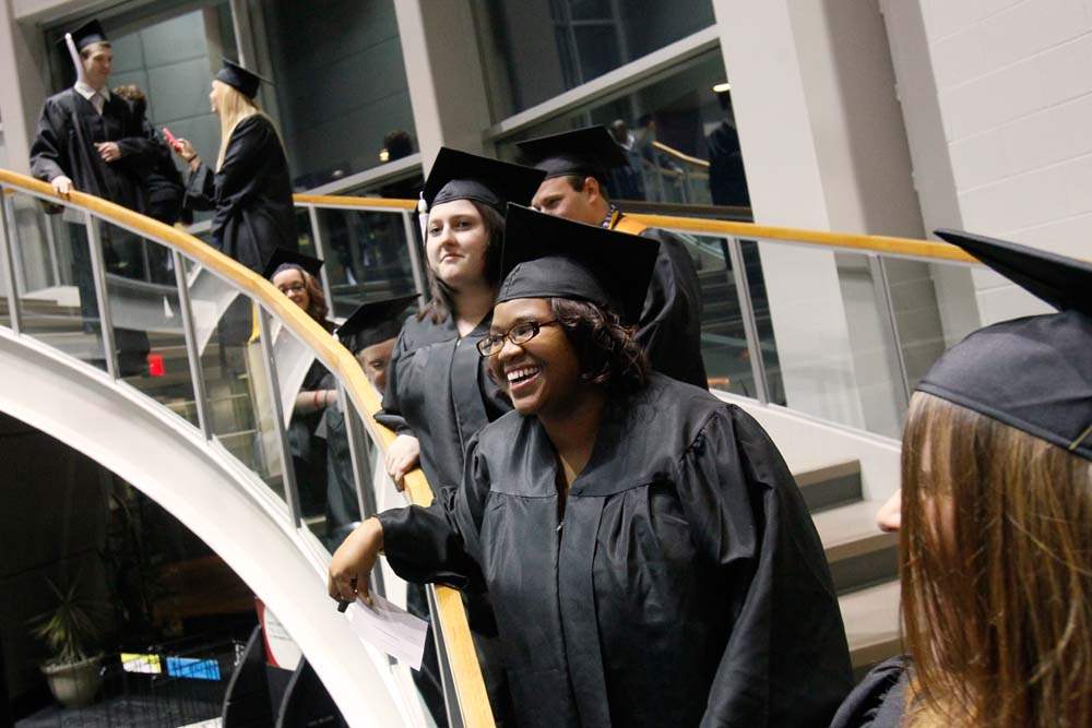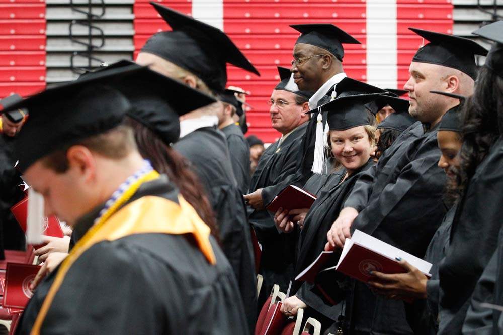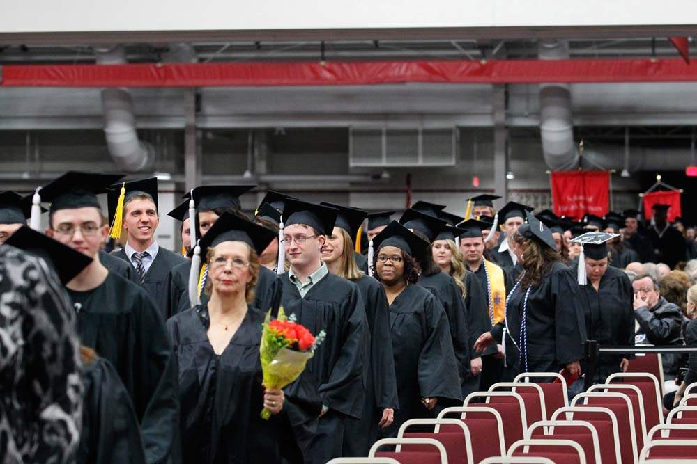 Graduates proceed to their seats Friday evening at the beginning of the 32nd Fall Commencement at Owens Community College.