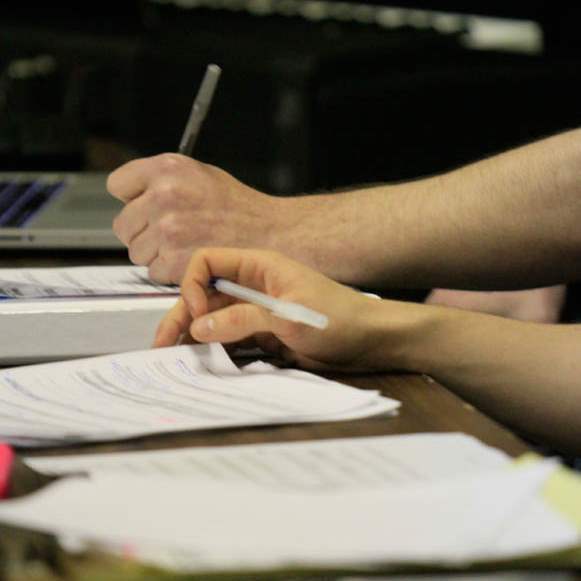 The musical director and director take notes during the auditions, held this past weekend.