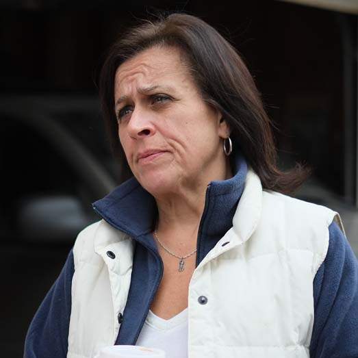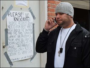 Alejandro Zapata, friend of the Kohlman Family, talks on his cell phone outside of Devin Kohlman's apartment building Wednesday in Port Clinton.