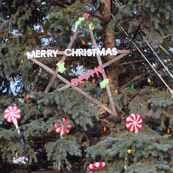 Adams Street Park is decorated for Christmas in honor of Devin Kohlman.