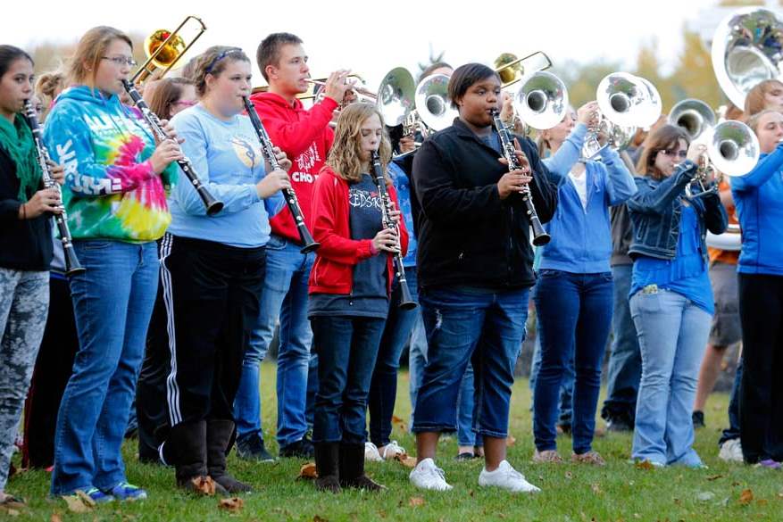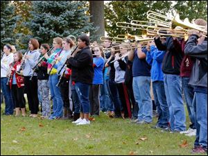 The Port Clinton High School marching band performs at a pep rally for Devin Kohlman.
