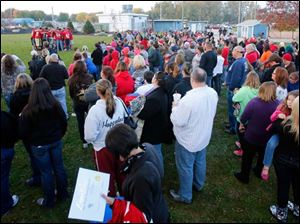Large crowd gathers at Waterworks Park in Port Clinton for at a pep rally for Devin Kohlman.