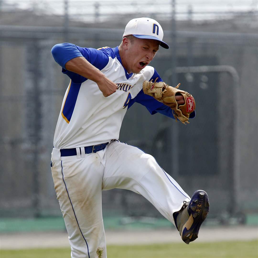Northwood pitcher Nick Russell (4) celebrates defeating Delphos St. John's.