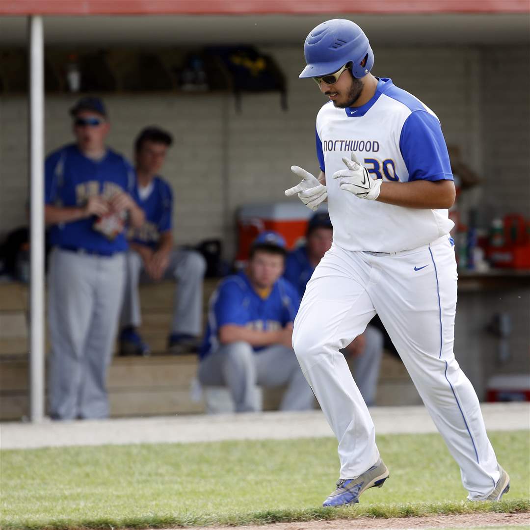 Northwood's Justin Rohrs (30) celebrates hitting his second home run of the game.