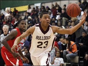 Bowsher's Mookie Mustaffa (24) battles Scott's Delaquon Norwood (10) for the ball.