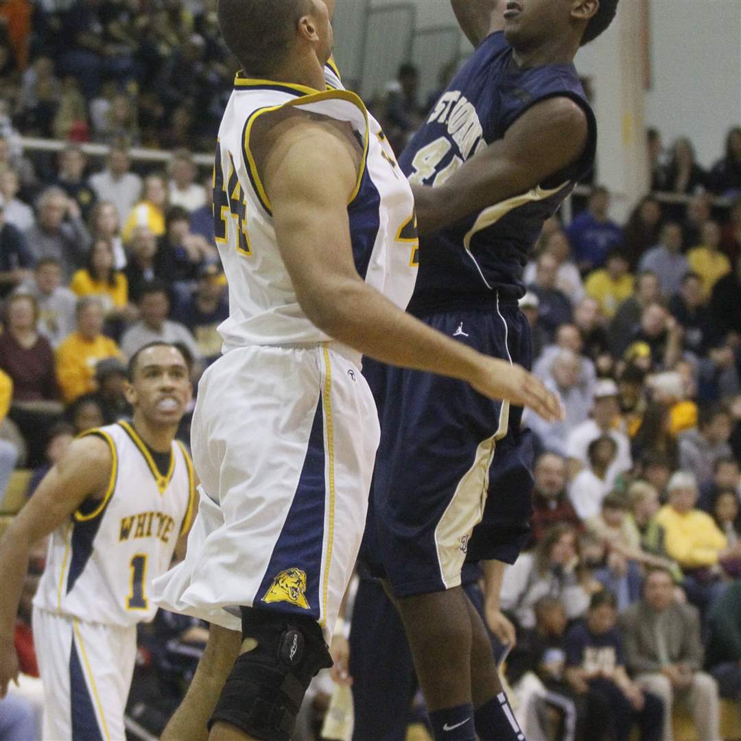 The 44s duke it out in midair as Whitmer's Chris Wormley guards against St. John's Caleb Wallace.