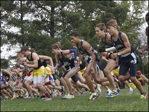 The girls varsity race kicks off at the Northern Lakes League cross country championship meet at Pearson Metropark in Oregon, Saturday.