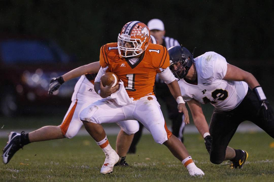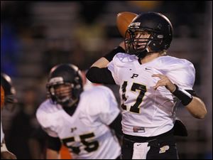 Perrysburg player Steve Slocum, 17, throws downfield during the second quarter.