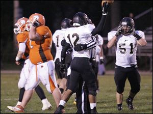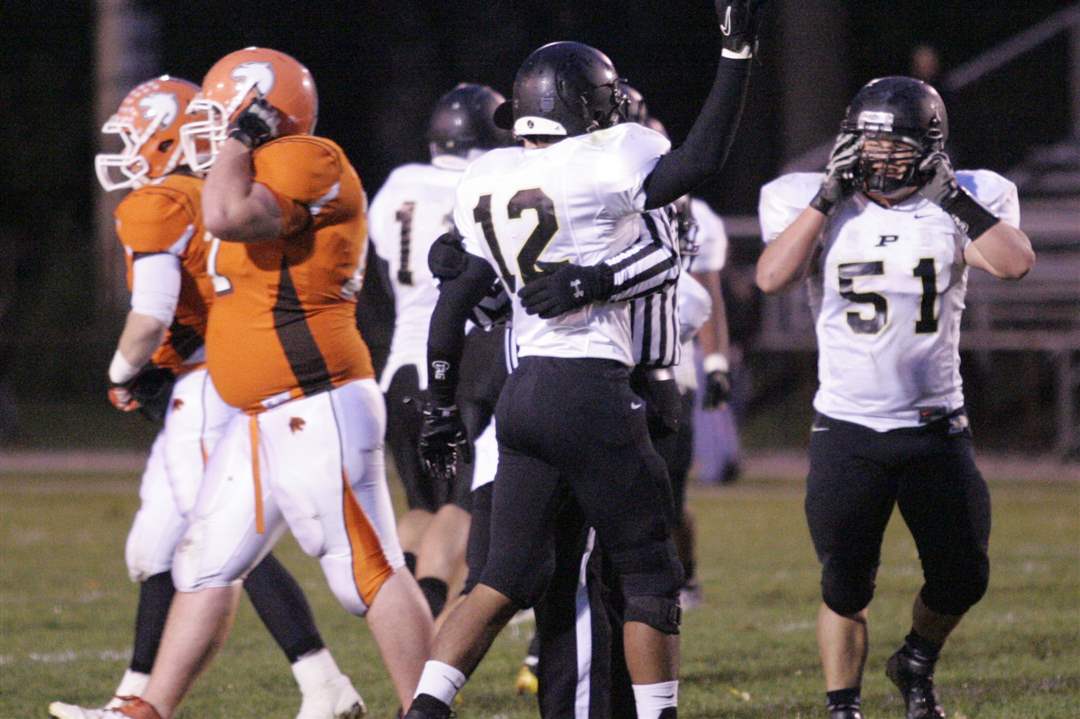 Perrysburg player Tyler Gordon, 12, comes up with the ball on a Sylvania fumble.