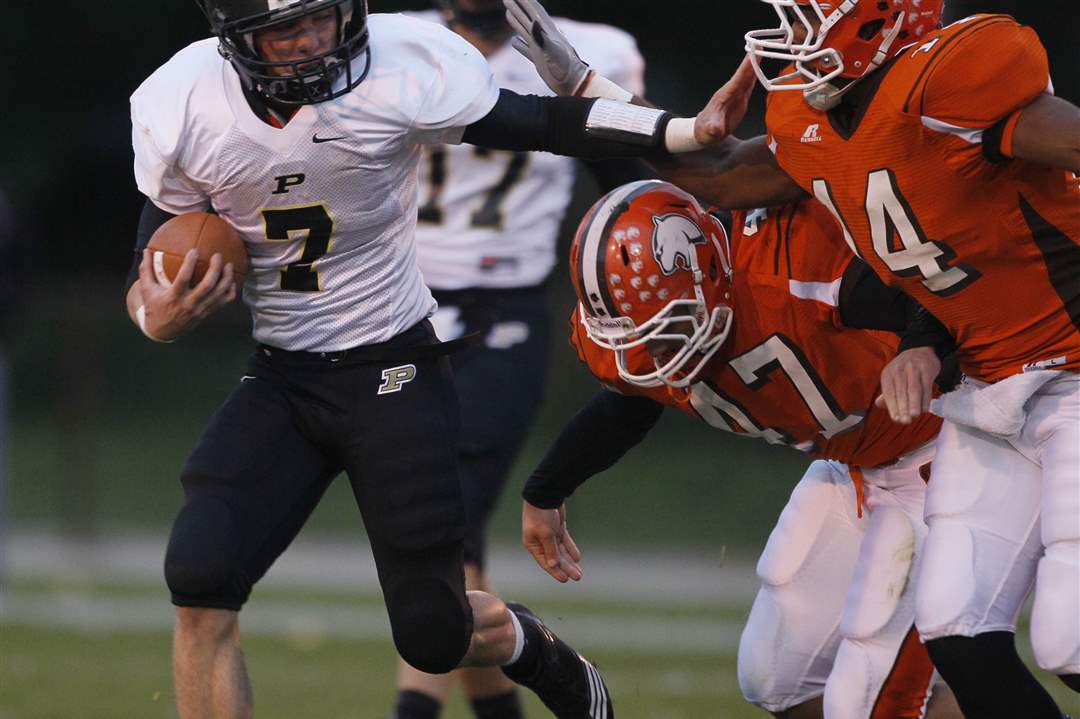 Perrysburg's Austin McKinley, 7, tries to evade Southview players Jay Fisher, 47 and Allen Gant, 14.