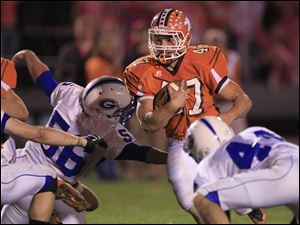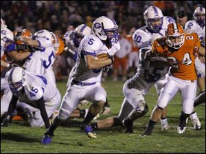 Anthony Wayne player Zach Grohowski, 5, tries to turn the corner during the second quarter.