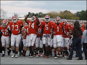 Sylvania Southview players enter the stadium to play Anthony Wayne High School at Northview High School, Friday, Oct. 14, 2011.