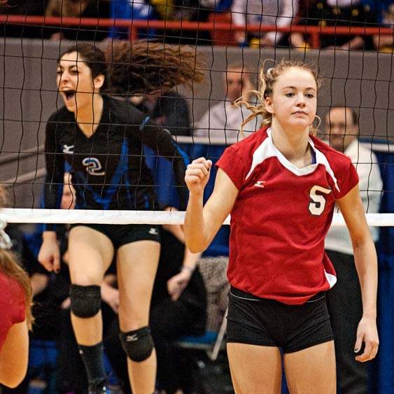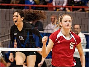 Bedford's Nicole Rightnowar reacts as Bloomfield Hills Marian's Alannah Barash celebrates their victory during their MHSAA Semi Final match.