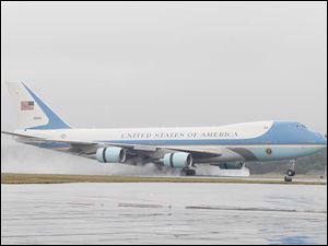 Air Force One takes off from Toledo Express Airport.