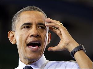 President Barack Obama speaks at a campaign event at Canyon Springs High School, Wednesday in in North Las Vegas, Nev. November’s presidential election offers Americans one of the starkest choices in years. On this, at least, President Barack Obama and Republican rival Mitt Romney can agree.