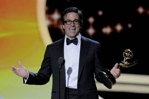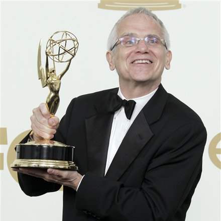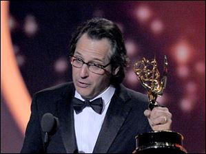 Jason Katims accepts the award for best writing for a drama series for "Friday Night Lights" at the 63rd Primetime Emmy Awards on Sunday in Los Angeles.