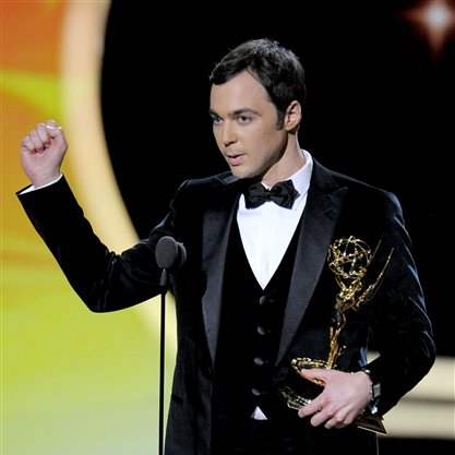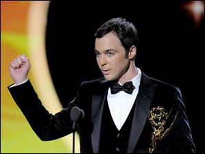 Jim Parsons accepts the award for outstanding lead actor in a comedy series for "The Big Bang Theory" at the 63rd Primetime Emmy Awards.