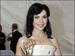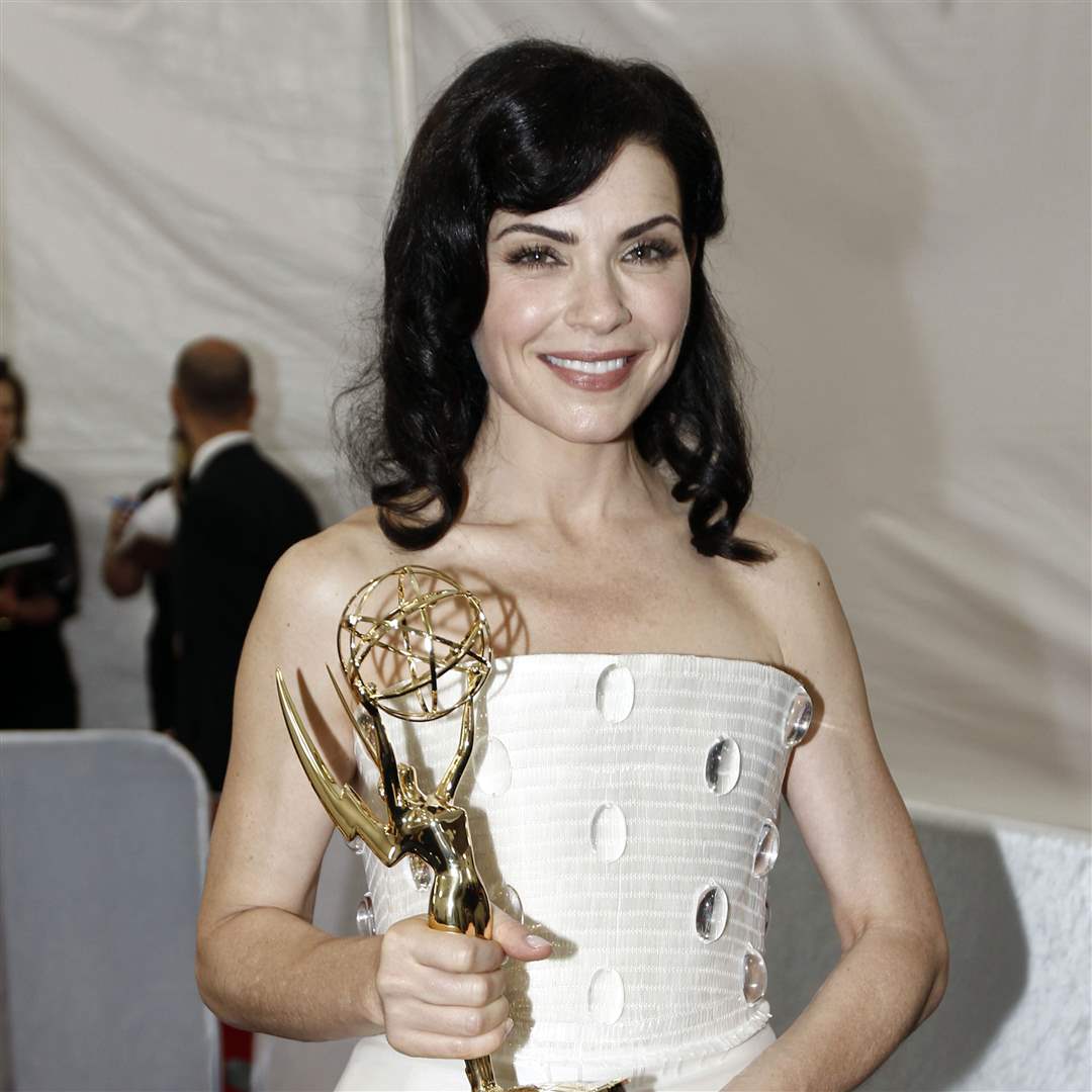 Julianna Margulies is seen backstage after winning the award for outstanding lead actress in a drama series at the 63rd Primetime Emmy Awards.