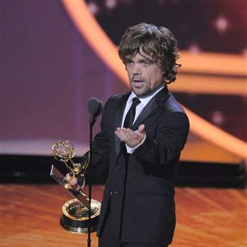 Peter Dinklage accepts the award for outstanding supporting actor in a drama series for "Game of Thrones" at the 63rd Primetime Emmy Awards on Sunday in Los Angeles.