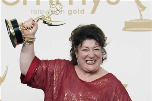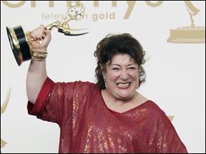 "Justified" cast member Margo Martindale holds the Emmy for best supporting actress in a drama series backstage at the 63rd Primetime Emmy Awards on Sunday in Los Angeles.
