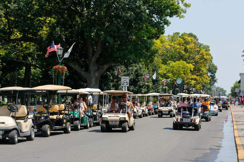 Tourists cruise Delaware Avenue at Put-in-Bay.