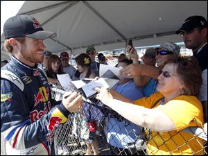 NASCAR driver Brian Vickers gives fans a smile while signing autographs at Michigan International Speedway.