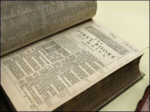 Close-up of one of two 400-year-old first edition King James Bibles that will be going on display at the Toledo Museum of Art.
