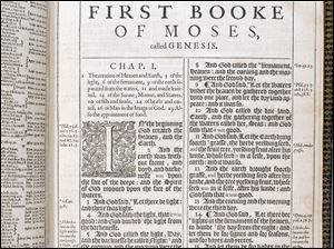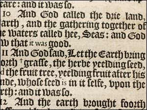 Page of the King James Version bible. A rare first edition version is on display at the Toledo Museum of Art.