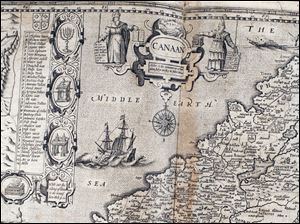 A map page inside the King James Version bible, printed in 1611, by British printer Robert Barker.