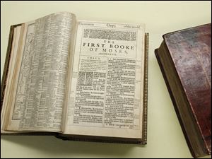 Two 400-year-old first edition King James Bibles will be going on display at the Toledo Museum of Art. The one in the foreground has a 17th century binding, the other has a late 19th century binding.