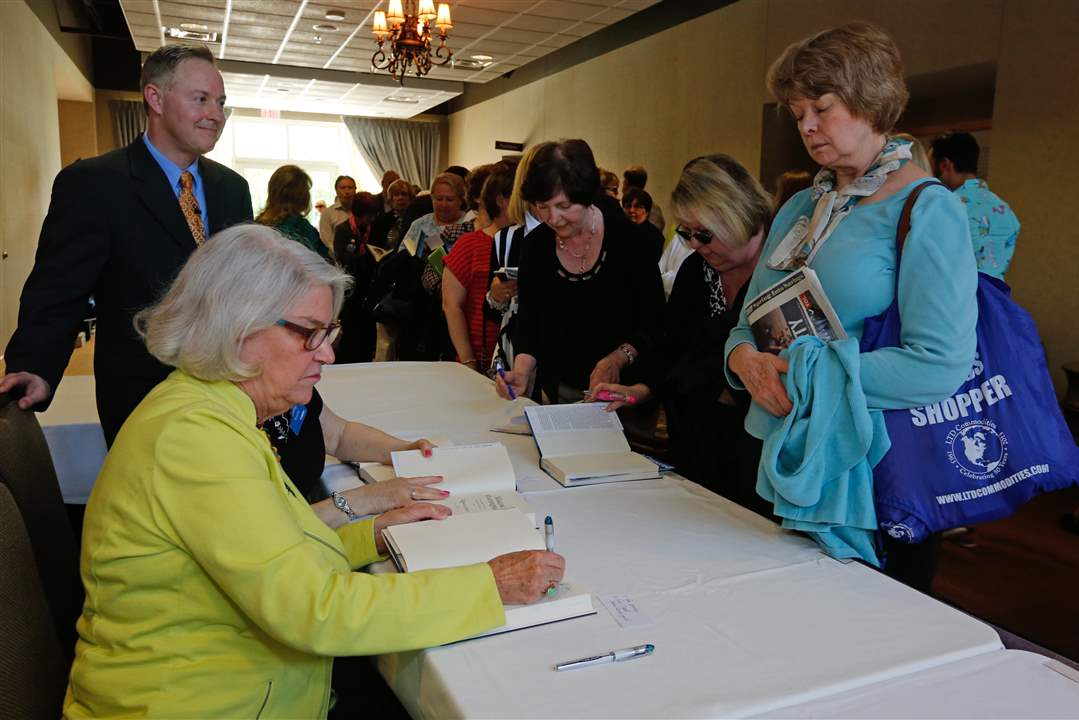 Rebecca Eaton, front left, signs copies of her book. Also photographed are Darren LaShelle, left, director of content for WGTE, and right, from front, are Linda Furney, Sharon Dickerson, and Susan Darmofal, all of Toledo.