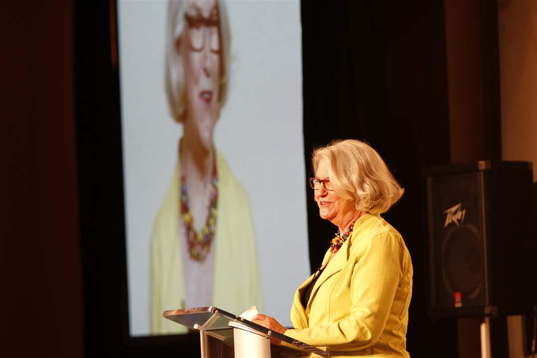 Rebecca Eaton speaks to more than 450 people about 'Masterpiece and Mystery!' on PBS.