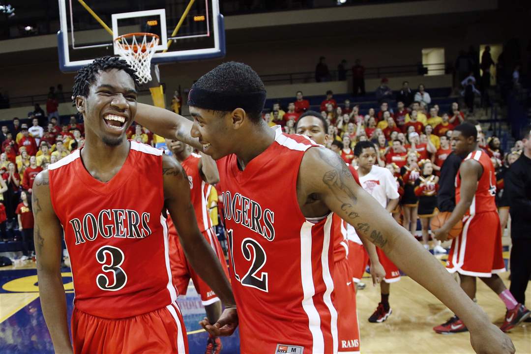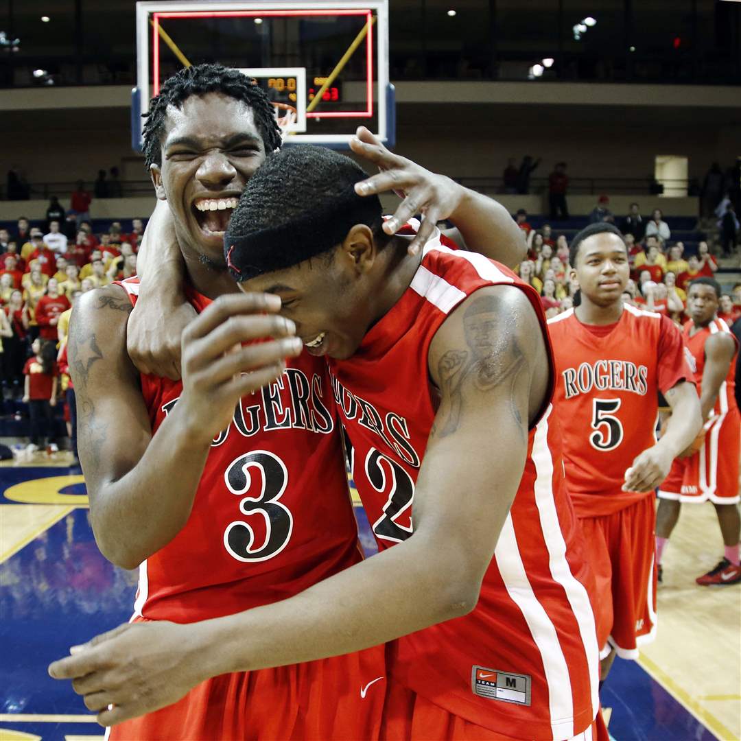 Rogers Tony Kynard II (3) and Clemmye Owens celebrate the win.