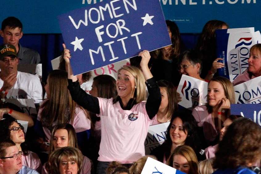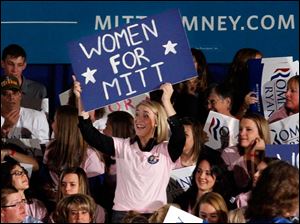 A supporter holds up a sign for Republican presidential nominee Mitt Romney at the University of Findlay Koehler Athletic Complex during the 'Victory In Ohio' Bus Tour on October 28, 2012.