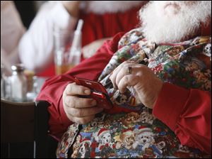 Mike Waggoner, of Toledo, using one of Santa's electronic helpers. Ambassadors for Santa Claus, Mrs. Claus, elves and other helpers, including members of Buckeye Santas and the Michigan Association of Professional Santas, meet in Toledo, Ohio on January 21, 2012. Tom Pellitieri (cq), owner of Toledo Santa LLC, and organizer of the annual event, says it gives participants get an opportunity to socialize, discuss the previous Christmas Season and plan for the coming year.