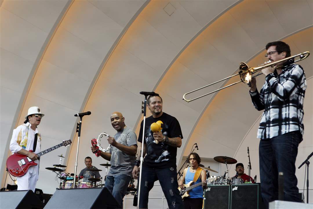 Singers provide the vocals as Santana, far left, provides the rich music that filled the amphitheatre.