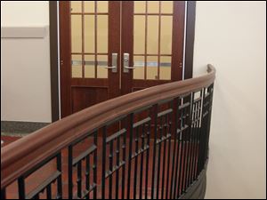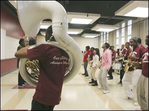 Scott High School senior Aaron Haskin mugs for the cameras in the new studio at Scott High School. Teachers and students make their move into the newly renovated school after more than two years of being displaced from their home in the Old West End.