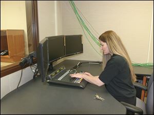 Scott High School Broadcast teacher Lisa Zilba in the new radio station.