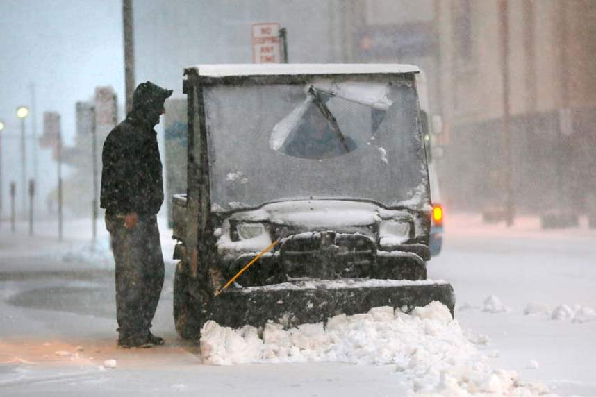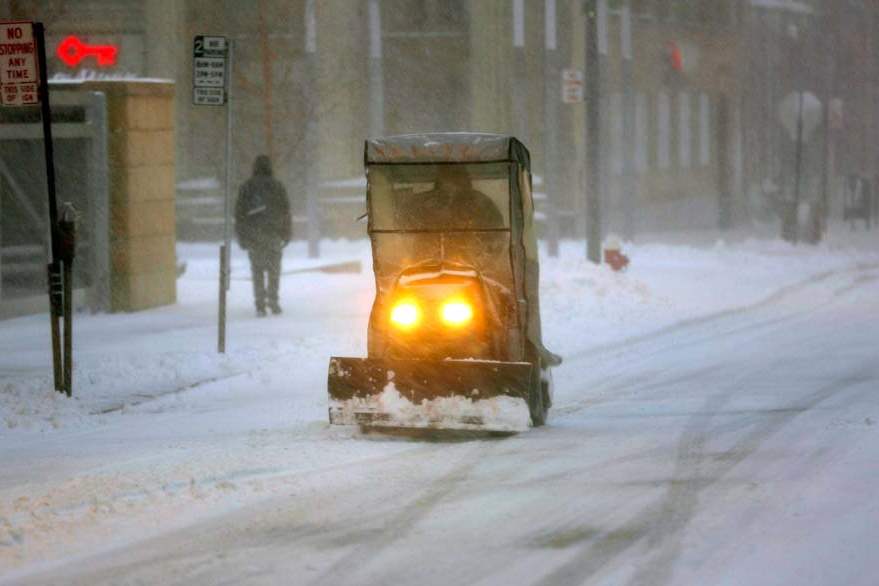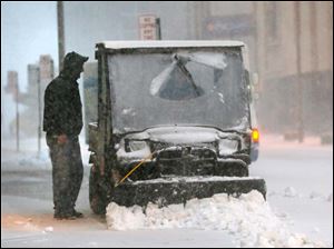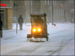 A plow clears Madison Avenue during a level 3 snow emergency in Toledo Wednesday.