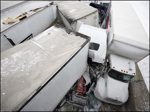 Traffic backed up after a multi-vehicle accident in the eastbound lane of the Ohio Turnpike near the County Road 268 overpass near Clyde.