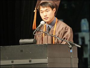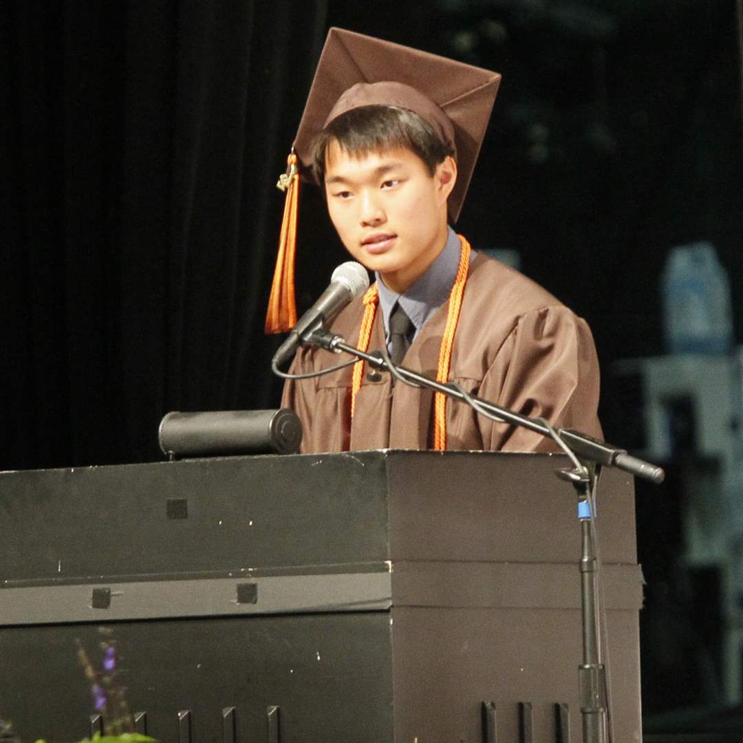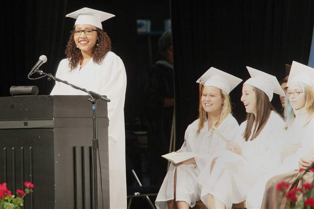 Student speaker Kevyn Cavanaugh speaking on "Life and Times at Southview High" during the ceremony.