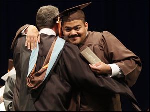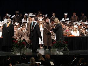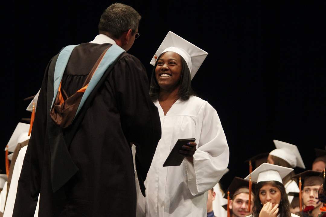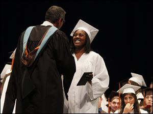 LaTanza Perry is congratulated by Southview High principal David McMurray. Sylvania Southview High School held its 36th annual commencement in the Stranahan Theater in Toledo, Ohio on June 10, 2012.