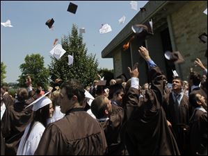 Southview students make the school's traditional mortar board toss after graduation ceremonies.