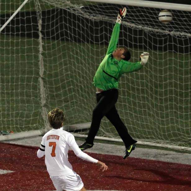 Southview's Brad Brown watches as the ball sails over Anthony Wayne goalie Austin Kaminski.