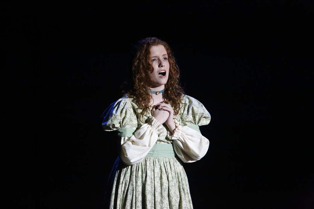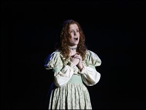April Varner, playing Fantine, sings, "I Dreamed a Dream" during Act I.