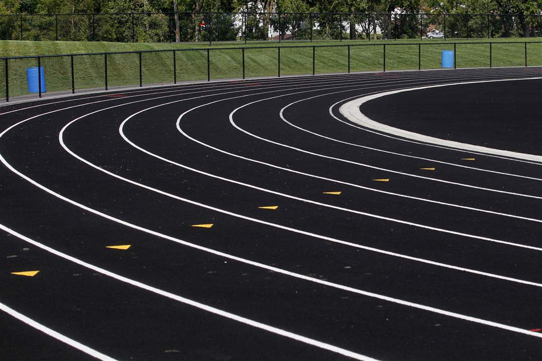 A new track encircles the turf field.