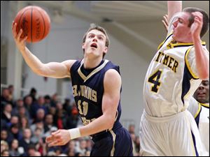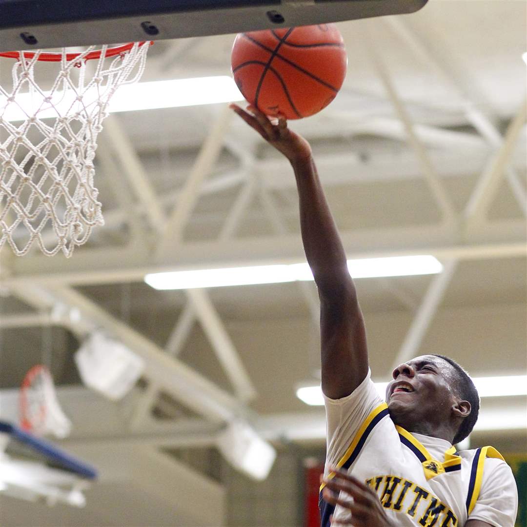 Whitmer's Jon Ashe goes to the hoop for a layup.