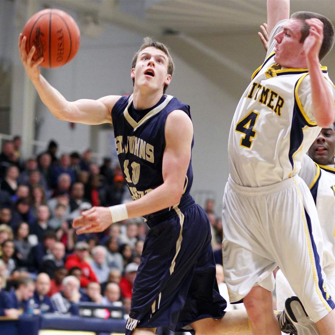 St. John's Jesuit's Austin Gardner (10) goes to the net agaisnt Whitmer's Luke Hickey.
