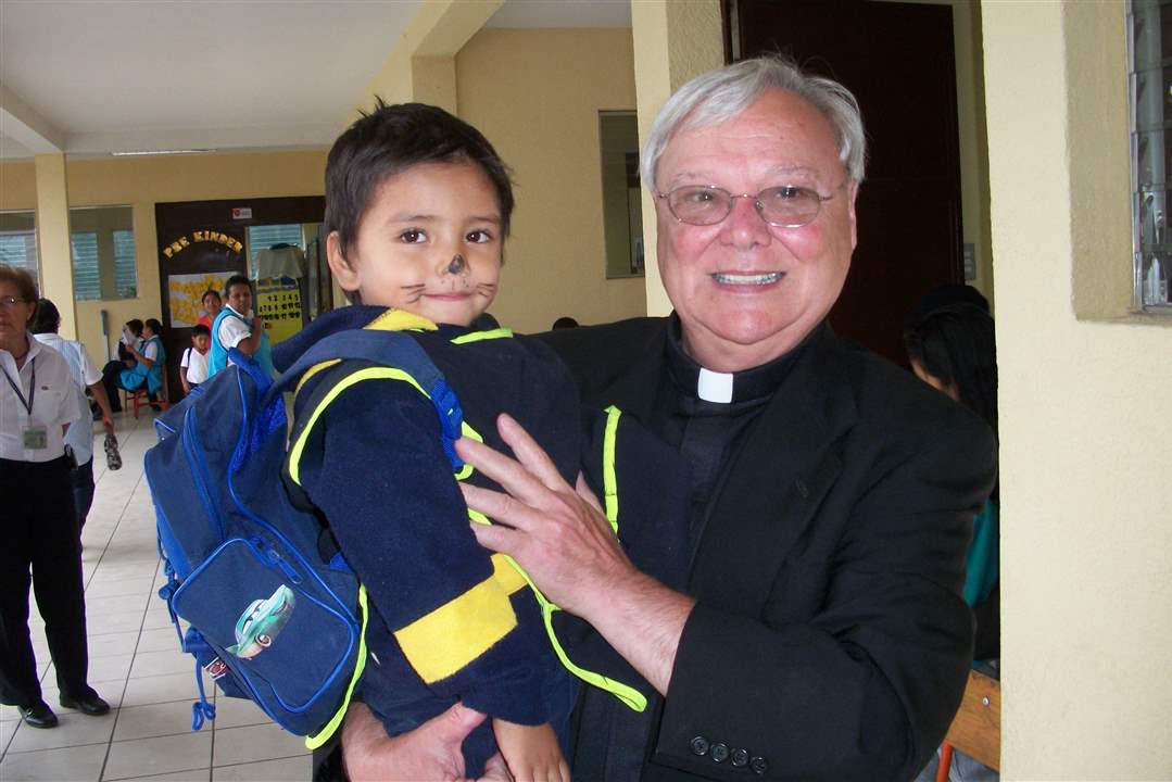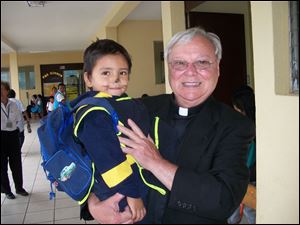 The Rev. Donald Vettese, founder of International Samaritan, holds 3-year-old Anibal Pacheco at the Santa Clara nursery in Guatemala City. The former president of St. John's Jesuit High School has been working for 16 years to help the poorest of the poor escape poverty through education.