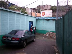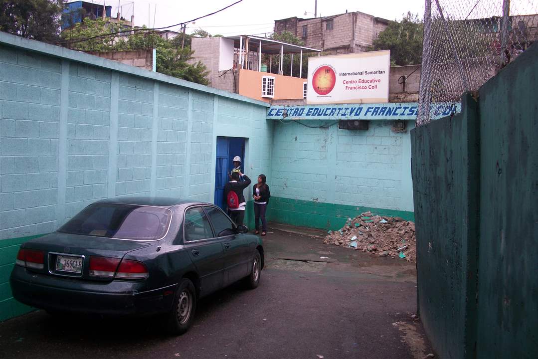 The metal door of Francisco Coll grade school (Centro Educativo) in Guatemala's notorious Zone 3 is locked and guarded by a municipal policeman.